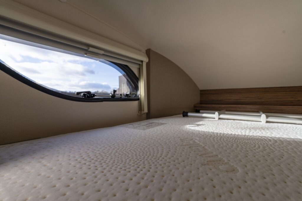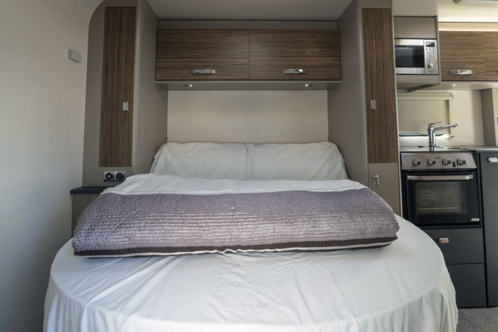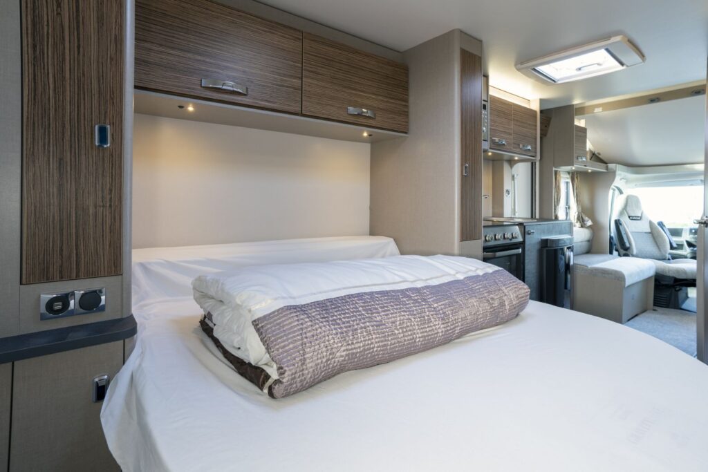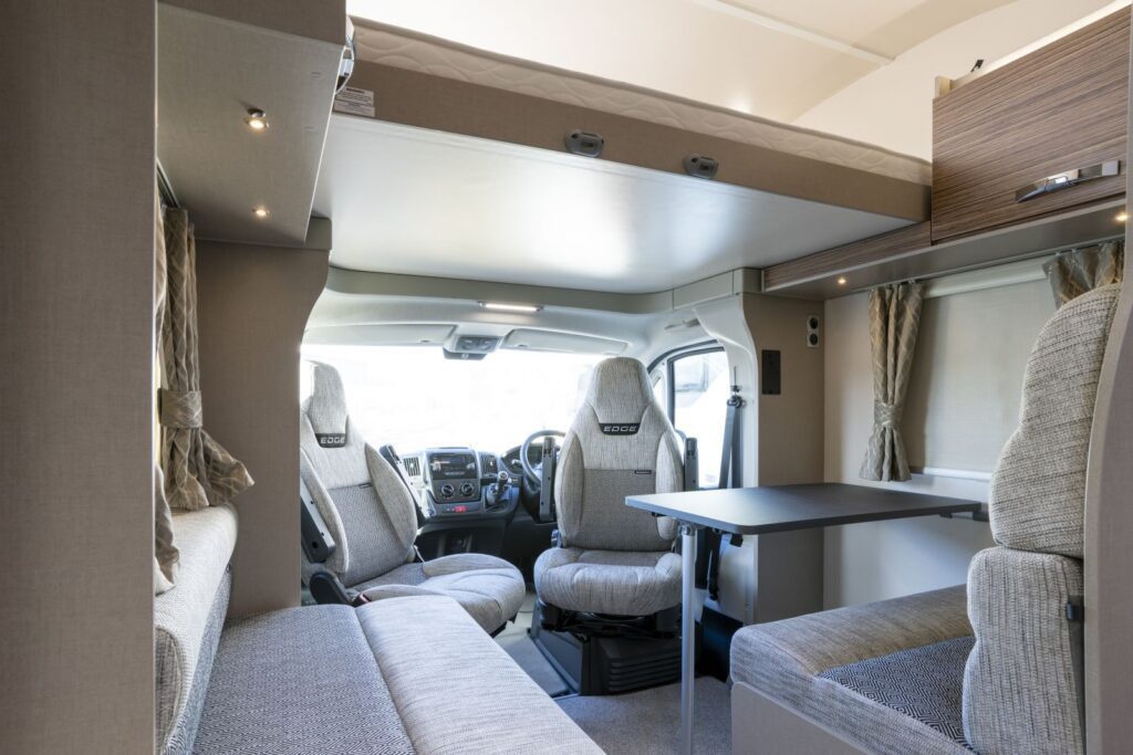 is a brand-new addition to our fleet for 2020 and is ideal for Couples or a family of four, can be driven on a normal car license. This motorhome would suit a couple who prefer an Island bed at normal height for maximum sleeping comfort with the option of a huge double bed above the cab area, with Captain style swivel seats in the cab area this creates comfortable extra living space. The Barra is 7.3 metres long so is very roomy inside and has been designed for maximum living space.